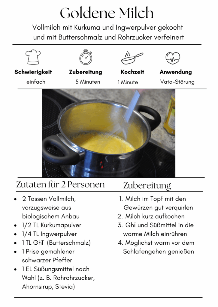 Hier das Rezept für die „Goldene Milch“ aus meinem Video „Kurkuma richtig anwenden bei Sodbrennen, Reizmagen und Reizdarm„.