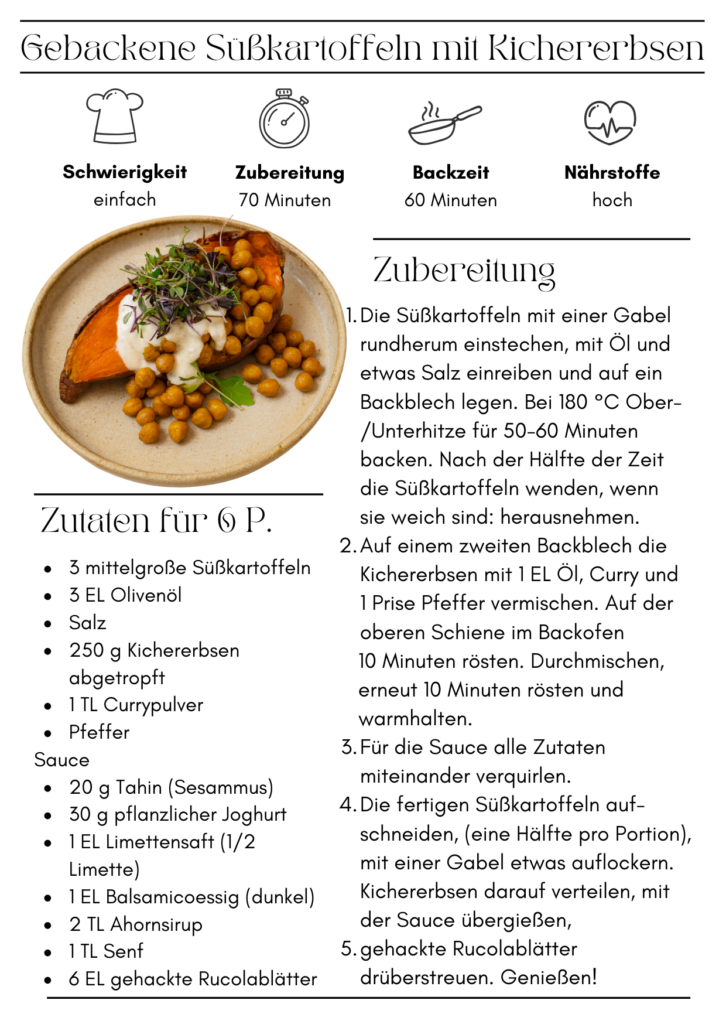 Rezept „Gerbackene Süßkartoffeln mit Kichererbsen“